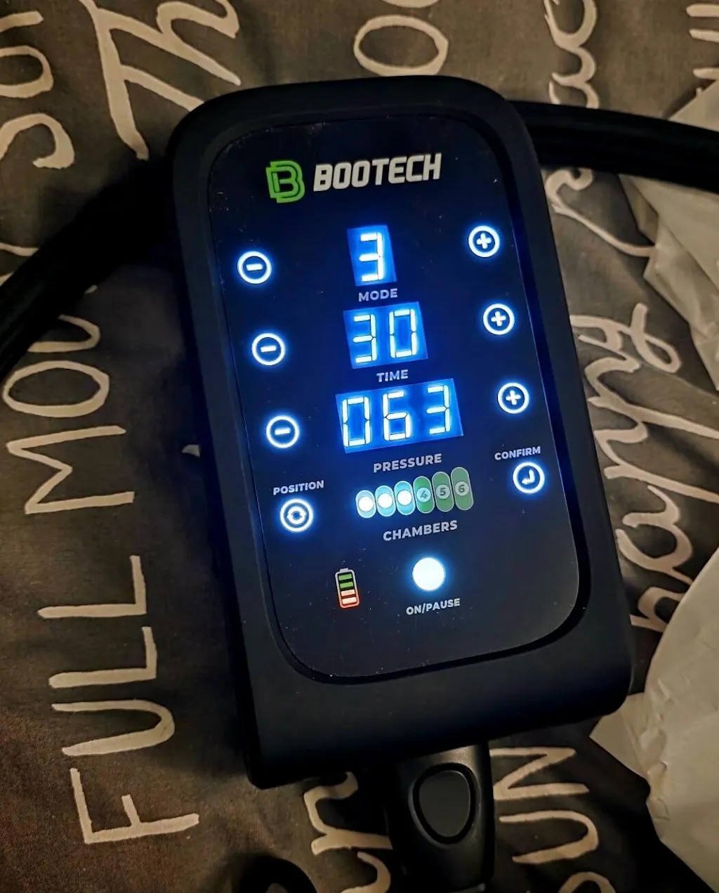 Contento después de usar mis Bootech BT 6.0 Pro Pants con el resultado en la recuperación después de mis entrenos y carreras. Pero no del todo, porque la batería tiene una duración hasta de 6 horas según las especificaciones, pero en mi caso el máximo tiempo de duración es de 2h15 sin que se apague la centralita y tener que realizar una carga completa, lo que frustra en ocasiones mis sesiones ya que espero a que se descargue por completo para volverla a cargar.